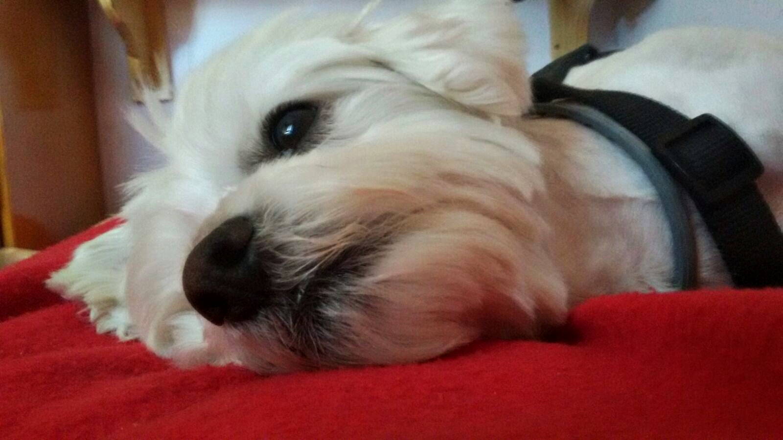 Bichón maltés de tres años. Vive junto a sus amig@s animales Suerte, gato amoroso, Punky, cobayo amoroso, Duquesa, gatita linda y su perrifamilia humana, Mª Carmen, Juarez y Estefanía. ¡Lo cuidan, como oro en paño! Gracias a sus buenos cuidados, ha podido salir de una operación, de, ¡me quedo paralítico de cintura para abajo o me recupero!